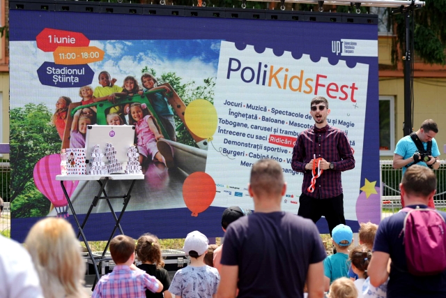 Mii de copii, de toate varstele, insotiti de parinti sau bunici au descoperit, pe Stadionul Stiinta si in parcul din spatele Facultatii de Mecanica, la Poli Kids Fest, la petrecerea speciala organizata de Universitatea Politehnica Timisoara de 1 Iunie, o lume minunata in care magia copilariei s-a impletit cu magia stiintei pentru a crea o zi de neuitat pentru cei mici.