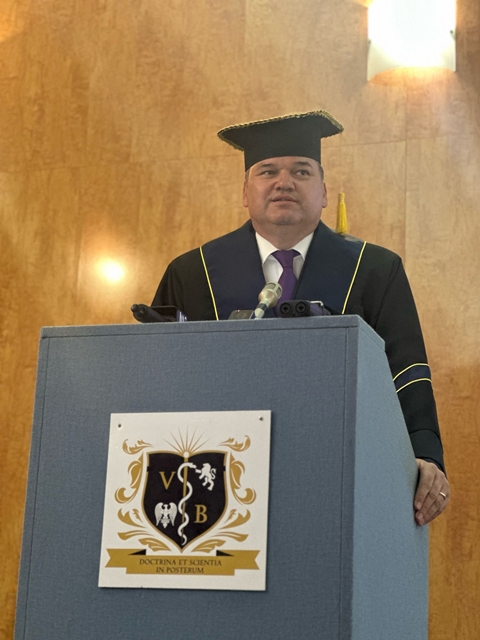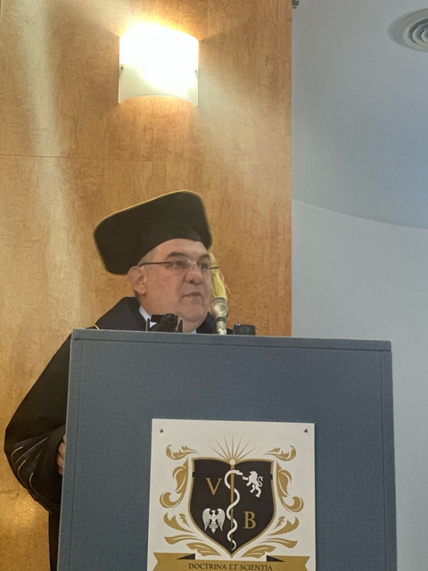 Ceremonia a inclus acordarea diplomei, inmânarea insemnelor universitare, precum si un moment de reflectie asupra parteneriatului dintre politica, administratie si educatie medicala. (Diana Mihai)