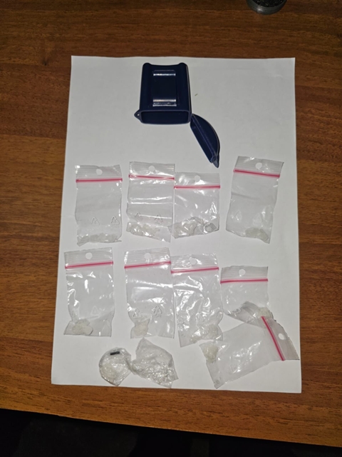 In borseta acestuia, jandarmii au gasit mai multe plicuri ce contineau granule de culoare alb-galbuie si resturi vegetale verzi, despre care au existat suspiciuni ca ar fi substante interzise.