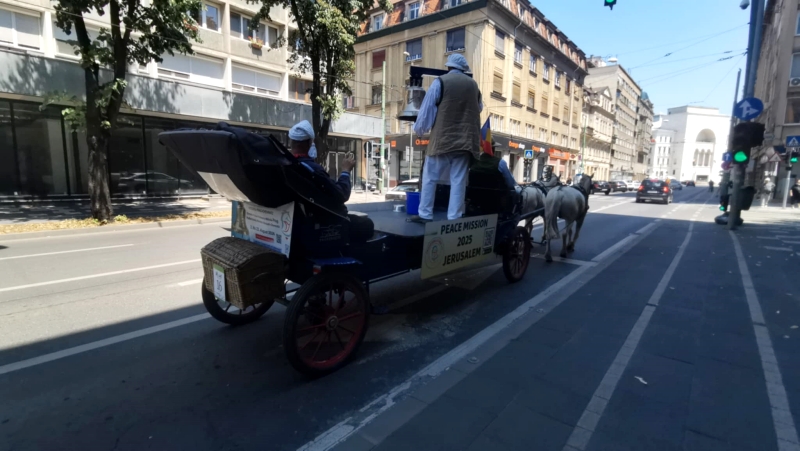 „Convoiul Pacii”, un pelerinaj ecvestru pornit din Berlin pe 8 mai, a ajuns la Timisoara, in drumul sau catre Ierusalim. Caravana este formata din voluntari germani, majoritatea pensionari, care strabat 4.800 km cu trei carute trase de cai si ponei, in semn de pace si comemorare a 80 de ani de la sfarsitul celui de-al Doilea Razboi Mondial.
