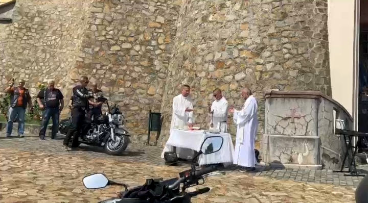 Momentul central al pelerinajului l-a constituit celebrarea Sfintei Liturghii in bazilica de la Maria Radna, dedicata motociclistilor care nu mai pot participa la astfel de drumuri – fie din cauza bolii, a unor dizabilitati, a resurselor limitate, fie pentru ca si-au pierdut viata in accidente. Preotul István Barazsuly, cunoscut de comunitate drept parintele Pisti, parohul Bisericii Elisabetin, a explicat sensul acestei intalniri spirituale: