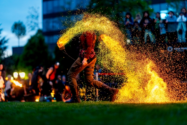 Serile Check Art Festival se vor incheia la inaltime, cu un spectacol de acrobatie la cerc suspendat, flying pole, dar si cu jonglerii cu foc.