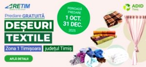 RETIM Ecologic Service S.A., in parteneriat cu ADID Timis, anunta o noua campanie trimestriala pentru predarea gratuita a deseurilor textile, in Zona 1 Timisoara, jud. Timis. Utilizatorii casnici se pot debarasa legal si GRATUIT de deseurile textile din gospodarie.