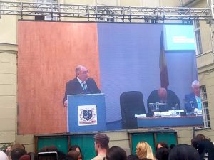 Prof. Cretu a transmis si mesaje in engleza si in franceza pentru studentii straini. Rectorul a amintit ca, dupa festivitatile foarte frumoase de absolvire din vara, dupa cateva saptamani, iata reincepe un nou ciclu universitar.