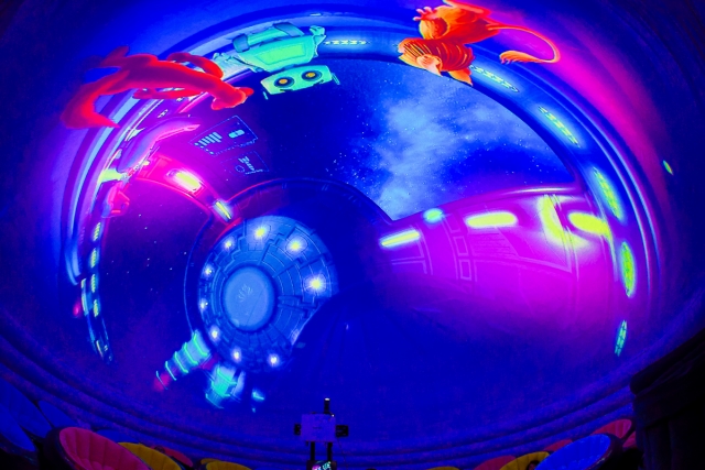 Atriumul devine, pana pe 12 octombrie, „zona de decolare” a celor care vor sa descopere secretele universului. Planetariul propune trei proiectii spectaculoase dedicate intregii familii: „Khrumka si Racheta Magica”, „Legendele taramului instelat” si „De pe Terra in Univers”. Pretul unui bilet este 30 de lei per proiectie sau 50 de lei pentru doua proiectii. Grupurile mai mari de 15 persoane beneficiaza de un tarif special: 25 lei/persoana. Daca vreti sa faceti o programare pentru un grup, puteti suna la numarul de telefon: 0745.262.143.