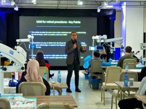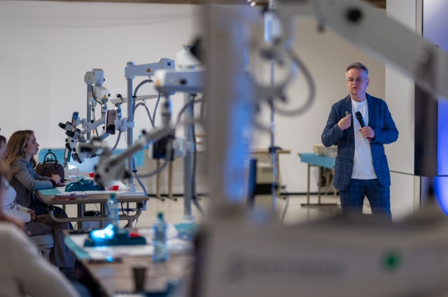 Cursul, desfasurat la Timisoara in perioada 10-12 octombrie 2025, a adunat un numar de 90 de cursanti din intreaga tara care au participat atat la activitati chirurgicale, cat si la o parte teoretica de prezentari clinice. Cursantii au lucrat pe microscoape oftalmologice si pe echipamente dedicate chirurgiei cataractei.