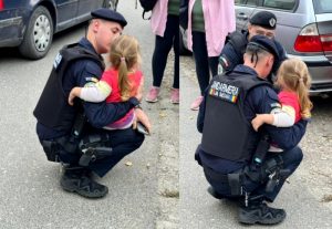 In seara de 15.10.2025, un echipaj de jandarmi din cadrul Gruparii  Mobile Timisoara, aflat in misiune, a intervenit prompt dupa ce o fetita de aproximativ 3 ani a fost observata singura, pe strada, vizibil dezorientata.