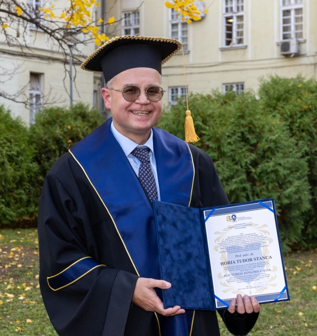 Universitatea de Medicina si Farmacie „Victor Babes” din Timisoara a acordat titlul de Doctor Honoris Causa profesorului universitar doctor Horia Tudor Stanca, unul dintre reperele incontestabile ale oftalmologiei romanesti. Evenimentul festiv a avut loc joi, 20 noiembrie, in Aula Magna a UMFVBT, iar Laudatio a fost rostita de prof. univ. dr. Andrei Motoc, prorector al UMF Timisoara, care a elogiat „excelenta, rigoarea si pasiunea” ce definesc intreaga activitate a profesorului Stanca.