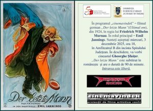 „Der letzte Mann” (Ultimul om), din 1924, capodopera a expresionismului tarziu regizata de Friedrich Wilhelm Murnau, ramane unul dintre cele mai influente filme ale erei mute, un tur de forta vizual care a schimbat modul in care privim povestea cinematografica fara dialoguri. Este despre demnitate, identitate si prabusire sociala, spus aproape exclusiv prin limbajul corpului si al camerei.