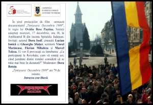 Va asteptam miercuri, 17 decembrie 2025, la ora 18, in Amfiteatrul B din Spitalul Judetean. „Timisoara: Decembrie 1989” are 78 de minute. Intrarea este libera.