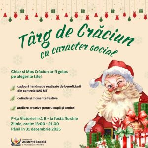 Directia de Asistenta Sociala Timisoara, cu sprijinul Primariei Municipiului Timisoara, organizeaza Targul de Craciun cu caracter social, un eveniment la care intreaga comunitate este asteptata pentru a afla mai multe despre activitatile si serviciile oferite de catre DAS MT, dar si pentru momente cu bucurie, surprize si intalniri cu povestile oamenilor plini de energie si creativitate din centrele sociale.