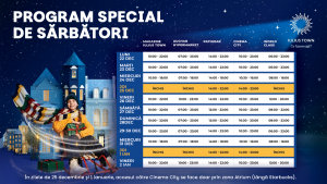Sarbatorile de iarna sunt despre timp petrecut alaturi de familie si prieteni, despre bucuria cadourilor, momentele de relaxare si experientele care aduc oamenii impreuna. Pentru ca aceste zile speciale sa fie cat mai bine organizate, Iulius Town a pregatit un program special de functionare, astfel incat timisorenii sa isi poata face cumparaturile de ultim moment.