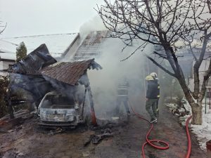 “Am fost solicitati sa intervenim pentru stingerea unui incendiu la un autoturism parcat in curtea unei locuinte pe strada Dunarea, in comuna Giroc.