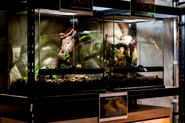 Curiosii vor putea vedea un o tarantula din specia Pamphobeteus Mascara, cel mai mare exemplar expus, cu o lungime de aproximativ 25 cm. Anaconda galbena, Cameleonul pantera, Pitonul ametist, Cobra falsa de apa sau Soparla fara picioare sunt o parte dintre exemplarele pe care le veti putea vedea in Iulius Town.