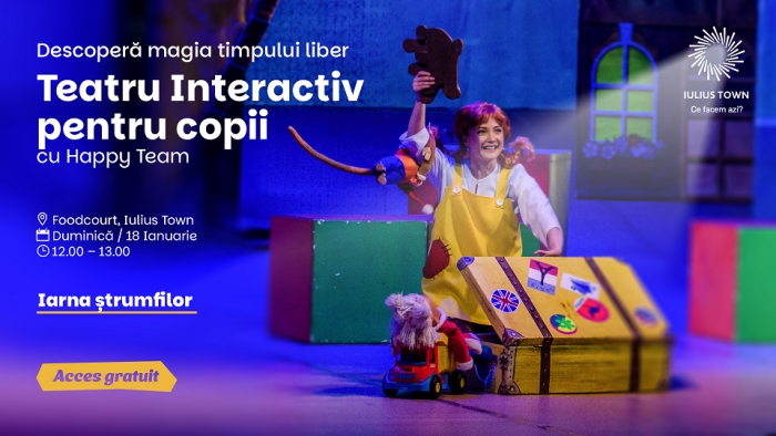 Duminica, 18 ianuarie, de la ora 12.00, Teatrul de Papusi ii invita pe copii la o noua „stagiune” plina de zambete. Spectacolul „Iarna strumfilor” se va juca pe mica scena din food court. Accesul este gratuit pentru toti doritorii.