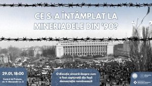 Joi, 29 ianuarie 2026, incepand cu ora 18, publicul este invitat la Centrul de Proiecte Timisoara, str. Vasile Alecsandri nr.2, la o dezbatere deschisa dedicata Mineriadelor din anii ’90, un subiect adesea evitat de institutiile statului si tratat marginal in manualele de istorie. Evenimentul isi propune sa raspunda unor intrebari esentiale: Ce s-a intamplat, de fapt, in timpul Mineriadelor? Care au fost consecintele lor asupra democratiei si societatii romanesti?