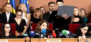 In timp ce presedinta instantei, Liana Arsenie, incerca sa-i „abureasca” pe reporterii din sala, colega ei Ionela Tudor, care se afla in dreapta sefei sale, s-a aplecat la urechea acesteia, i-a soptit ceva si a parasit sala.
