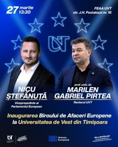Universitatea de Vest din Timisoara (UVT) face un pas decisiv in consolidarea cetateniei europene active prin semnarea unui acord de colaborare cu europarlamentarul Nicu Stefanuta, vicepresedinte al Parlamentului European si alumnus UVT – FEAA 2004.
