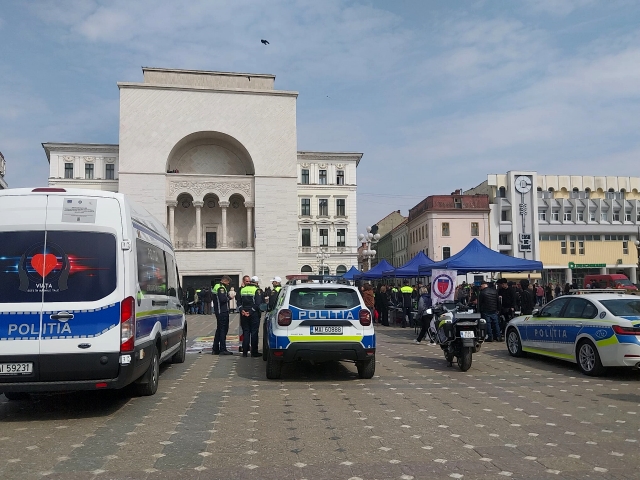 Inspectoratul de Politie Judetean Timis a organizat, miercuri, 25 martie, in piata centrala a Timisoarei, o ampla manifestare dedicata „Zilei Portilor Deschise”, cu prilejul aniversarii a 204 ani de traditie a Politiei Romane. Evenimentul, devenit deja o traditie locala, a adunat numerosi cetateni interesati sa descopere indeaproape activitatea politistilor si tehnica utilizata in misiunile zilnice.