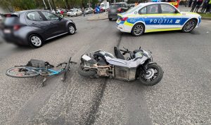Accident straniu pe o strada din Timisoara: Un motociclist a lovit un biciclist pe trecerea de pietoni